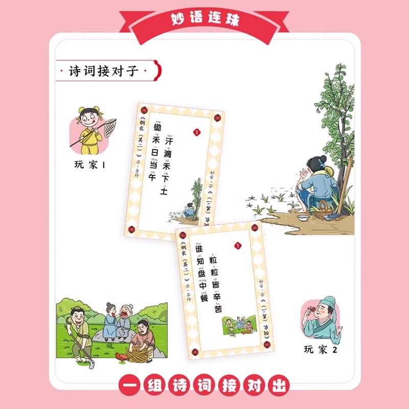 诗词接龙 课外阅读书籍儿童漫画版 春节寒假暑假亲子朋友互动游戏卡片纸牌全套4册 9年级注音版 中小学生古诗1 原来诗词也能这么玩