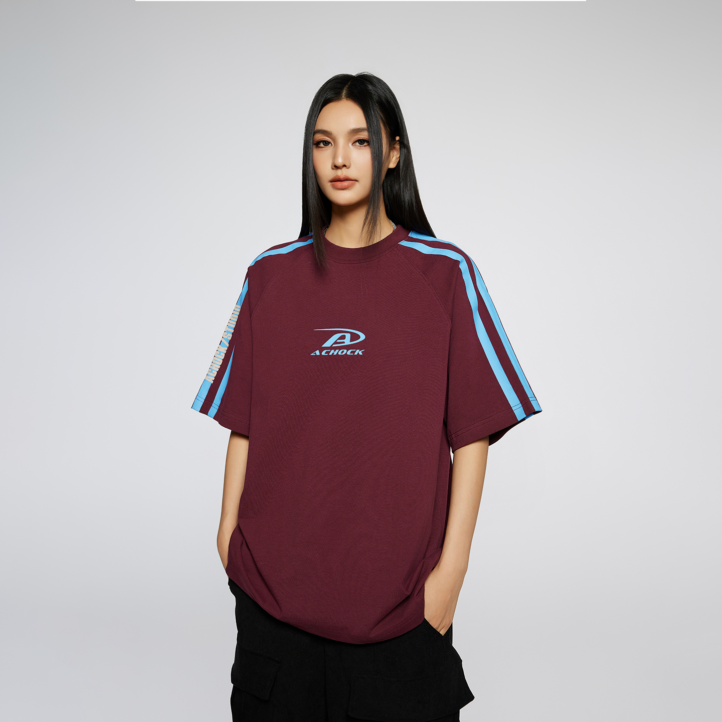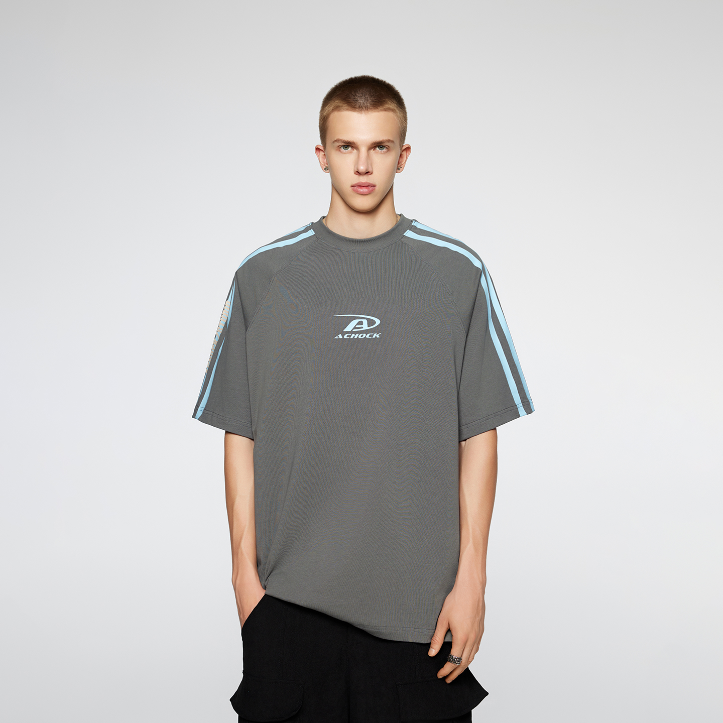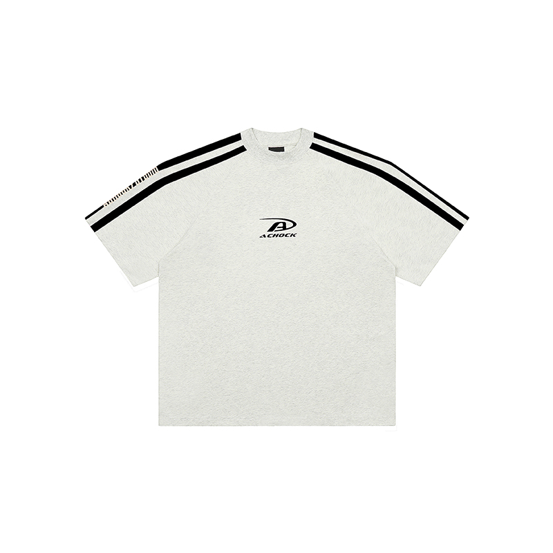 高街宽松短袖 潮牌拼接拼条印花重磅纯棉T恤美式 Achock官方店