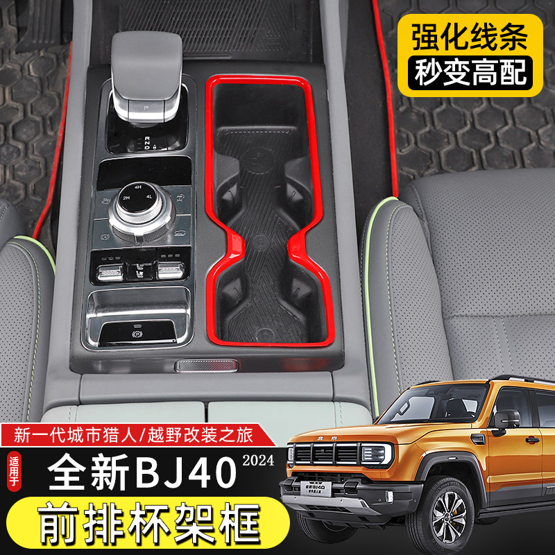 中控杯架装 北京BJ40C改装 饰贴内饰 BJ40前水杯架圈适用于新款 24款