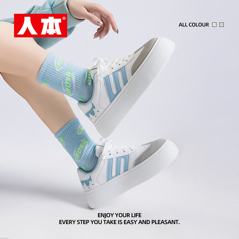 女2025春款 增高板鞋 新款 运动百搭德训鞋 潮 厚底跑步女鞋 人本小白鞋