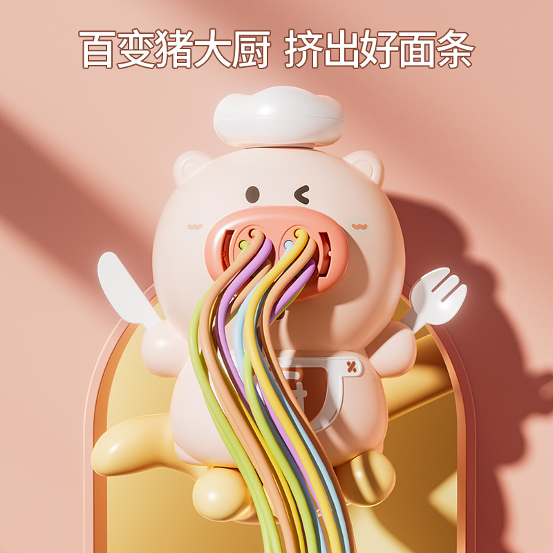 儿童猪大厨面条机彩泥玩具女孩无毒橡皮泥模具工具套装 汉堡粘土