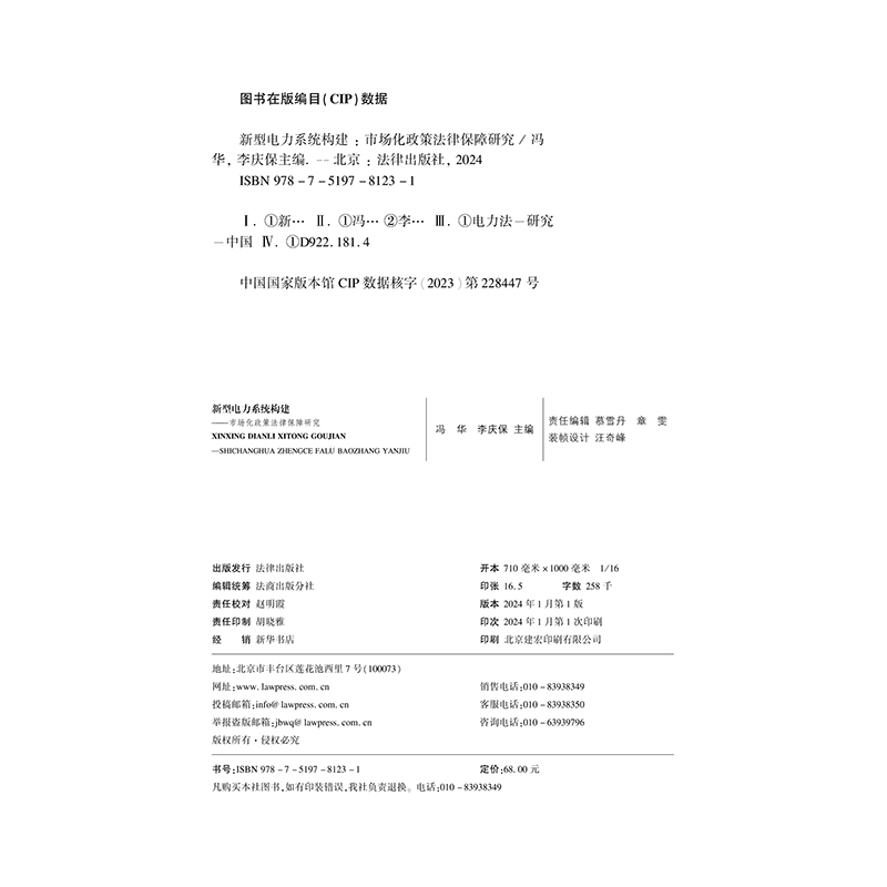 法政文库 能源法治与政策系列丛书 冯华 2024新书 法律出版 市场化政策法律保障研究 李庆保 社9787519781231 新型电力系统构建
