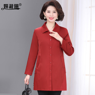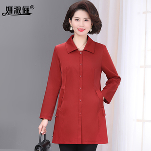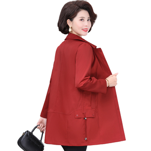 中老年妈妈风衣高档春秋2025新款 红色外套女 高贵洋气阔太太中长款