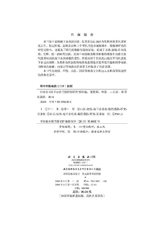 盆地 社书籍KX 科学出版 著 书 甘肃北山区域 著作 李国敏 岩体多尺度地下水数值模拟研究 专业科技 董艳辉 自然科学 等