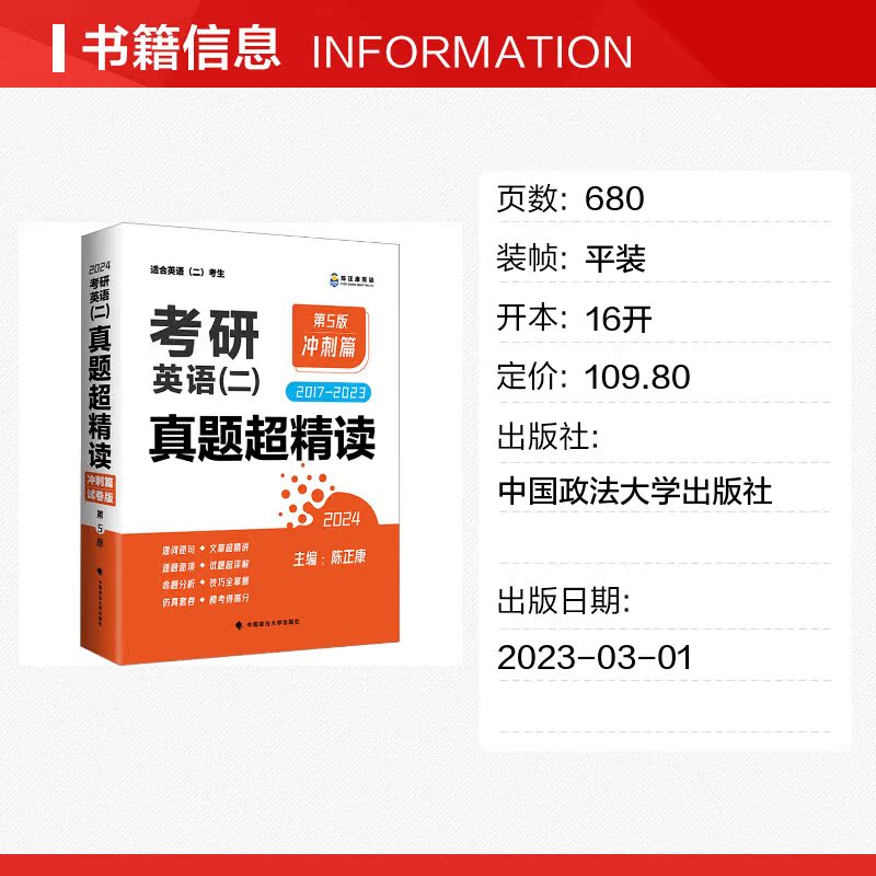 第5版 编 二 冲刺篇 图书籍 社 考研英语 新华书店正版 2024 真题超精读 托福 著 陈正康 中国政法大学出版 TOEFL文教