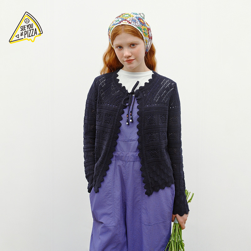 女2025春秋新款 SEE PIZZA毛针织衫 系带镂空毛衣326732 YOU