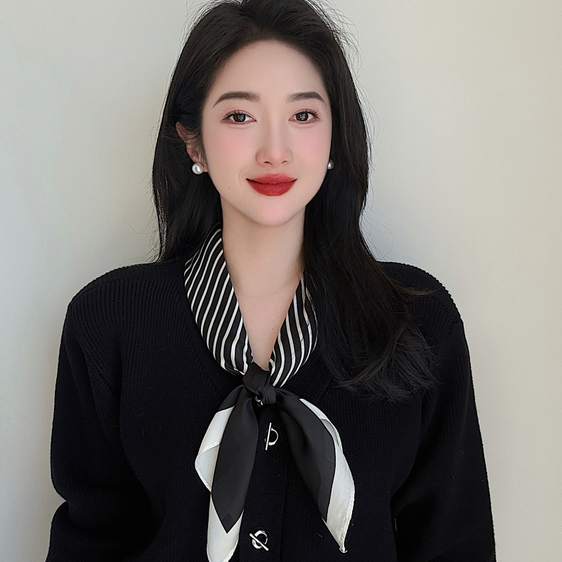 条纹磁吸扣拼接丝巾女2025新款 高级感锁骨链珍珠项链护颈围脖丝巾