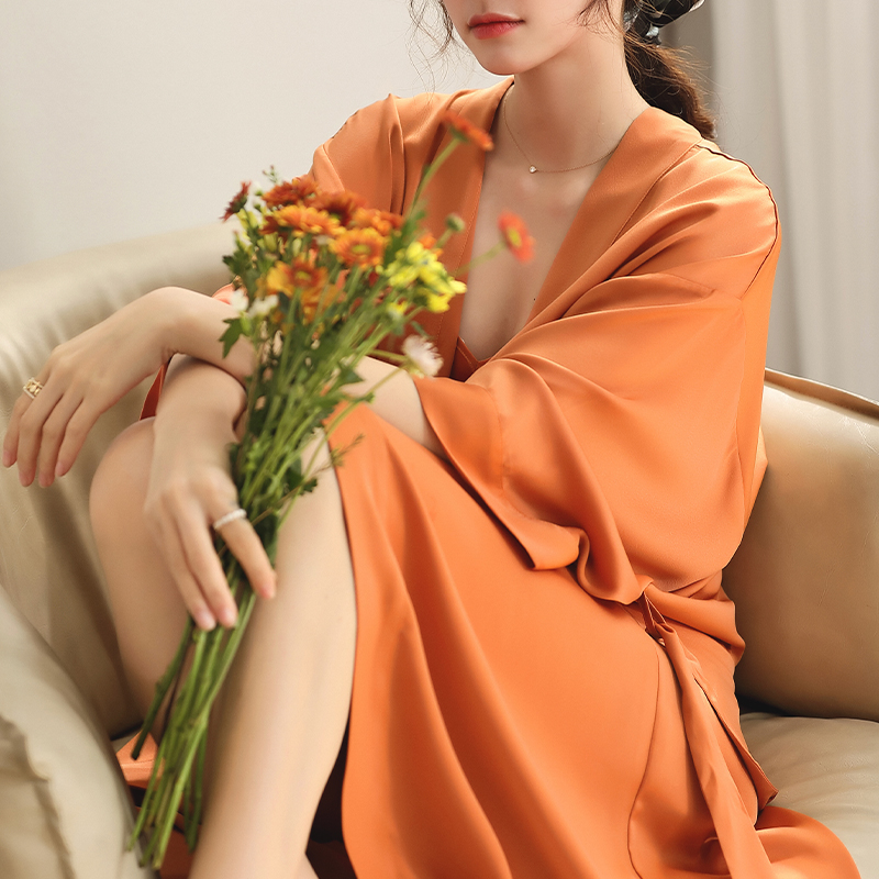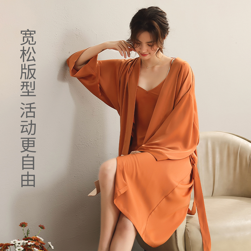 2025新款 性感冰丝睡袍纯欲风高级感蕾丝吊带睡衣 睡裙女春秋夏薄款