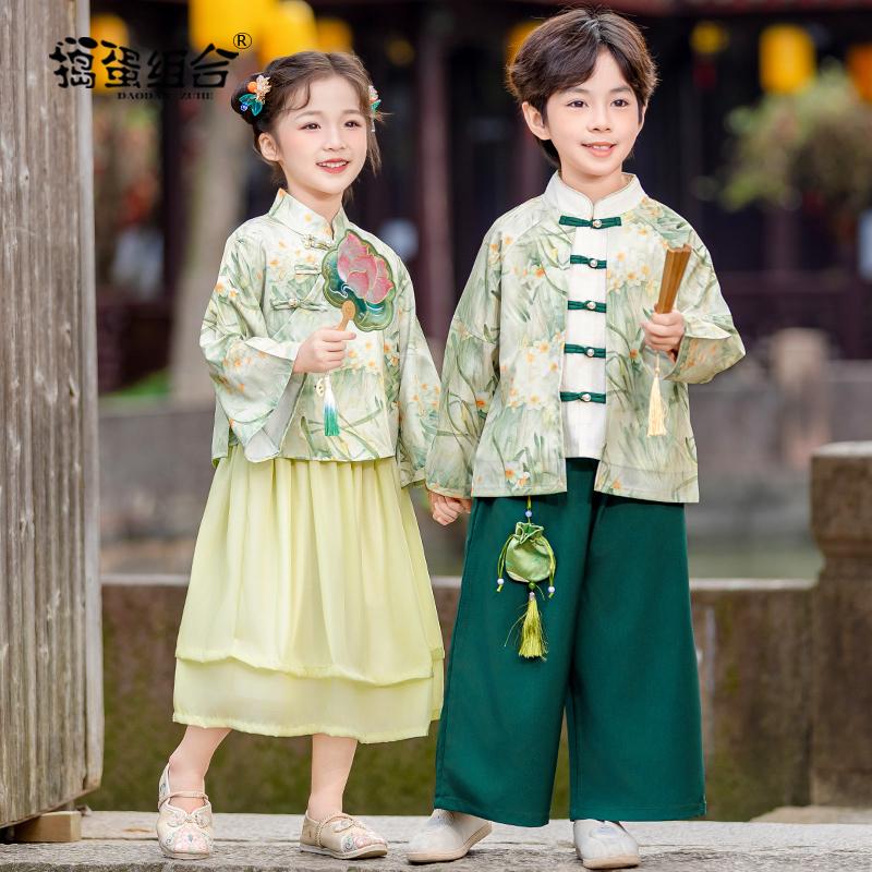 国风唐装 男童汉服秋装 女童长袖 亲子古装 古风幼儿园中秋演出服 中式