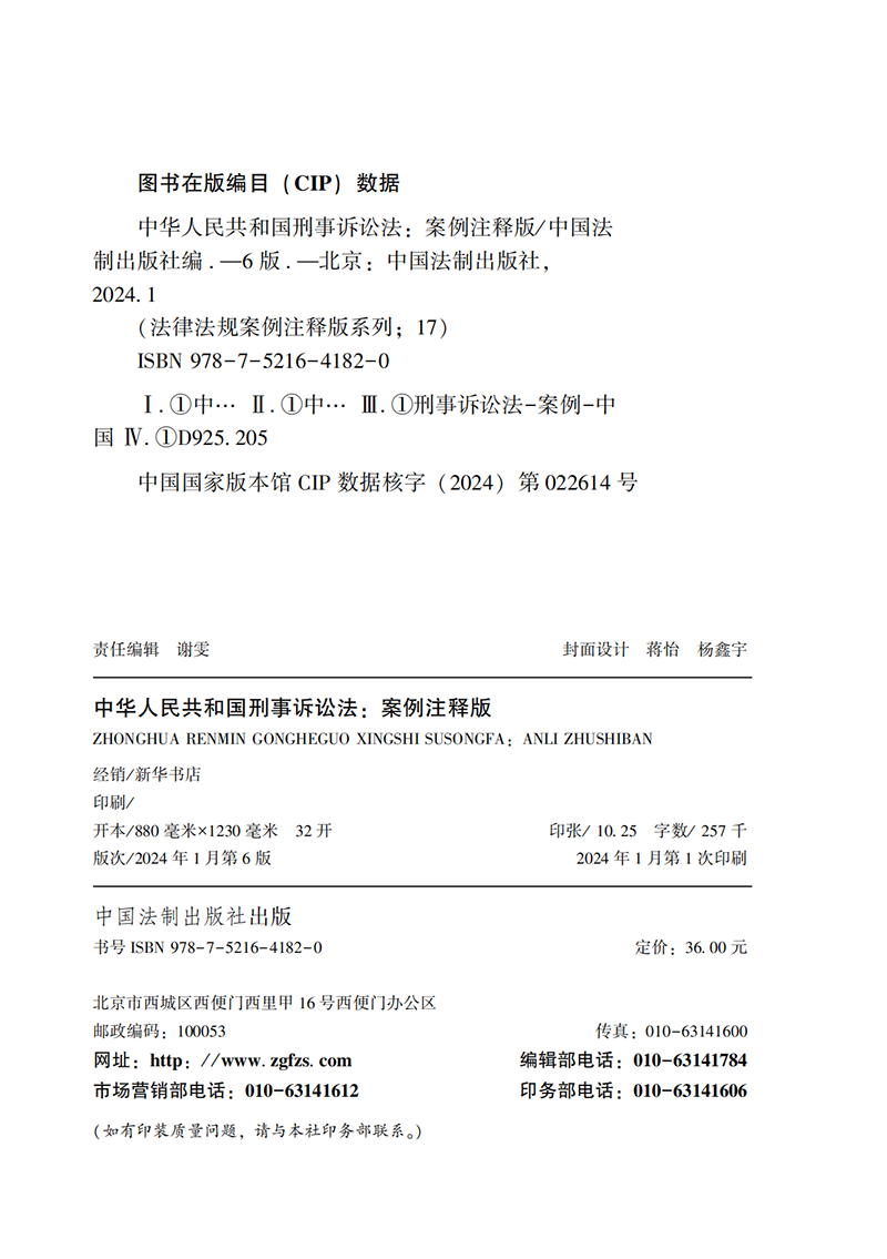 刑事诉讼 社9787521641820 中华人民共和国刑事诉讼法 中国法制出版 解读条文 以案释法 双色大字本 第六版 案例注释版 2024新 正版