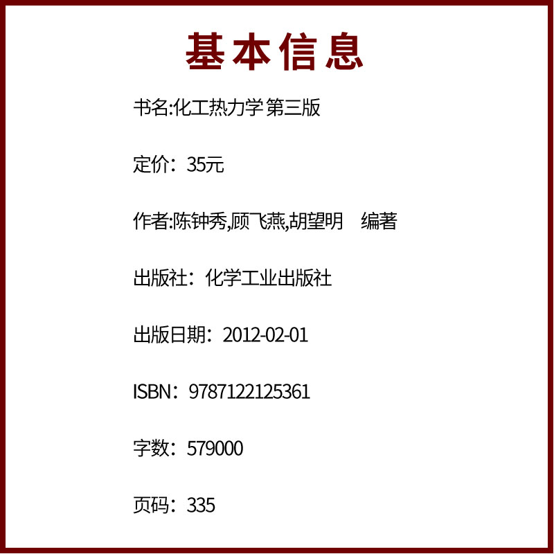 陈钟秀 化学工业出版 热力学性质 化工热力学 普通高等教育十二五重点规划教材书 高分子体系 第三版 蒸汽动力循环制冷循环 正版 社