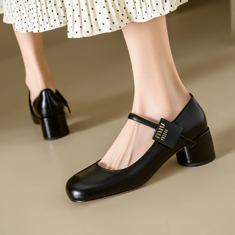 女百搭粗跟漆皮女 白色单鞋 玛丽珍鞋 小香风高跟新款