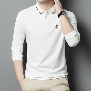 热力温感 秋新款 拇指白小T长袖 POLO衫 暖肤商务休闲翻领T恤 男款