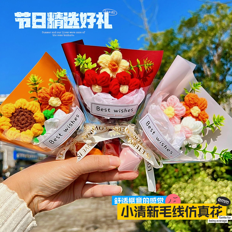 教师节礼物毛线花束仿真花向日葵针织花束伴手礼迷你成品小礼物