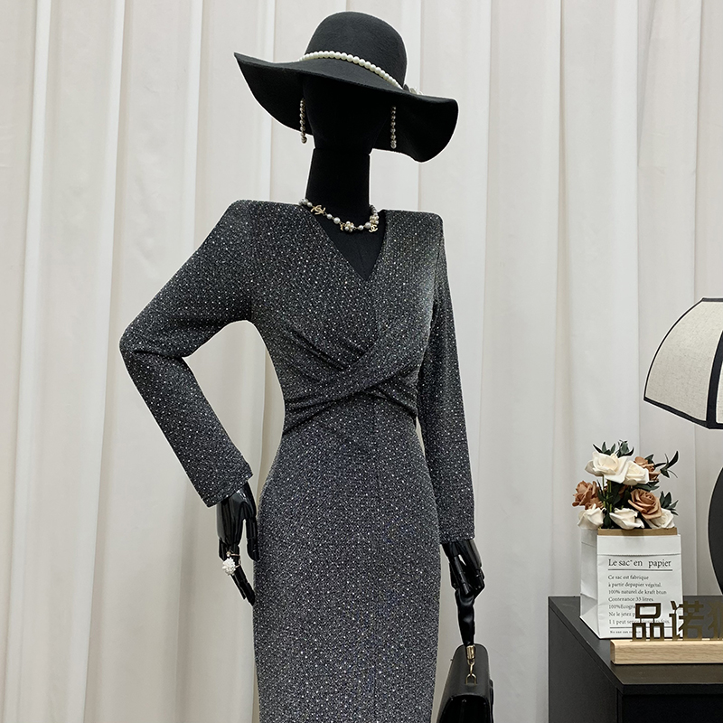 法式 新款 优雅气质感通勤收腰连衣长裙 爱依服连衣裙2025秋季 IEF