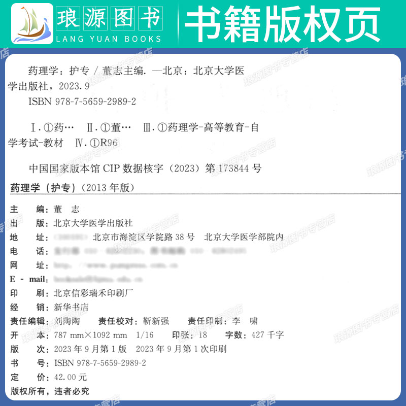 护理学专科董志北京大学医学版 中专升大专高升专高起专成人成考成教自考函授教育 护专 备考2025自学考试教材题库13193药理学