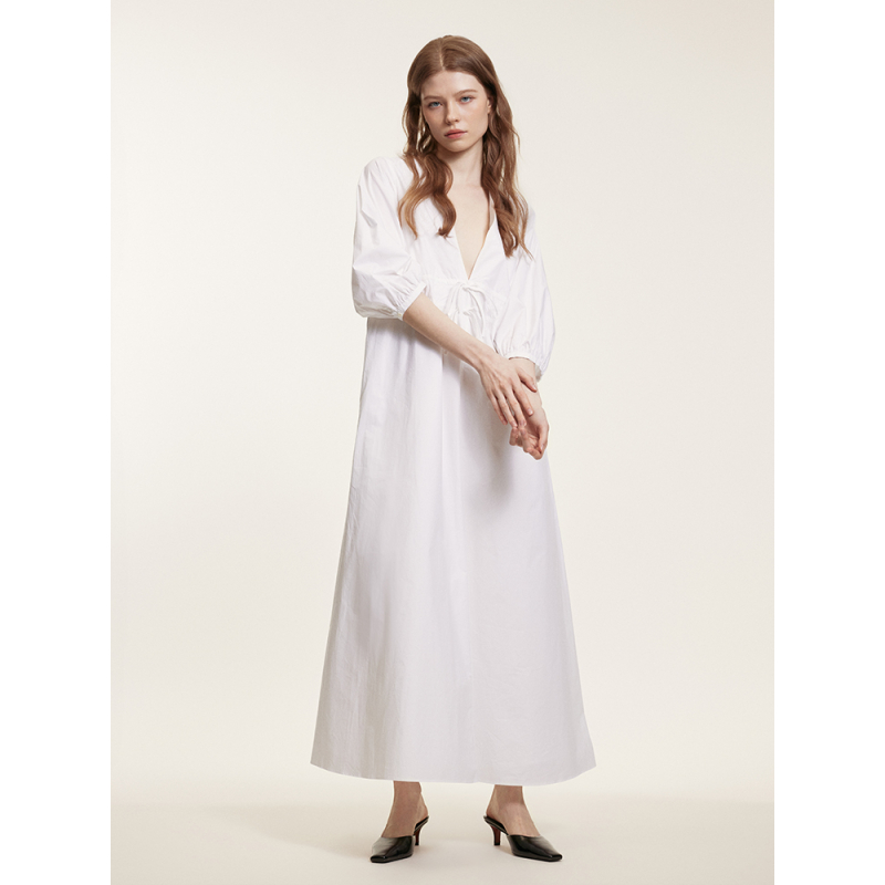 COCOBELLA度假风提花褶皱吊带连衣裙女优雅气质吊带裙长裙FR3077