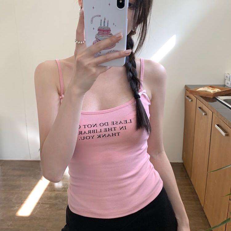 内搭 上衣西装 带胸垫春夏吊带背心女白色外穿字母印花短款 运动无袖