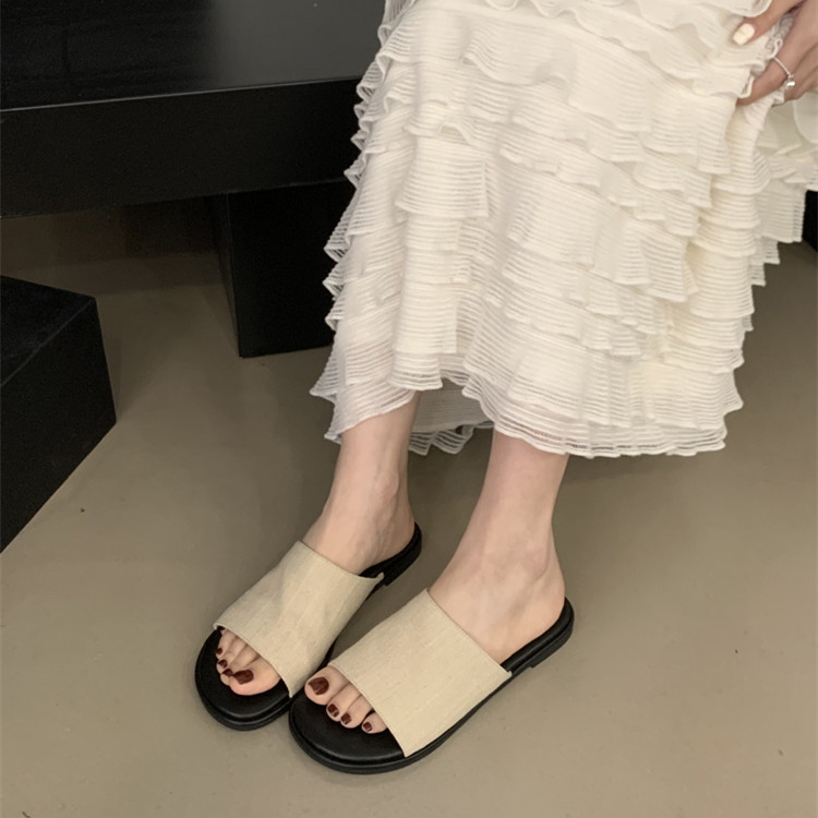 一字拖鞋 休闲露趾平底防滑凉拖鞋 女夏季 新款 子 外穿度假沙滩鞋 法式