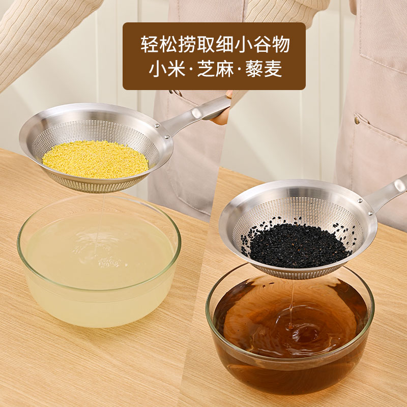 一体成型打沫勺冲孔漏勺304不锈钢捞小米饭神器洗芝麻过滤网笊篱