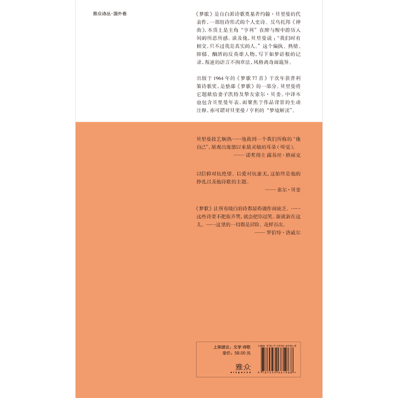 范静哗 有限公司 贝里曼诗集 北京联合出版 9787559661968 译 著 约翰·贝里曼 美 梦歌77首 国图书店正版