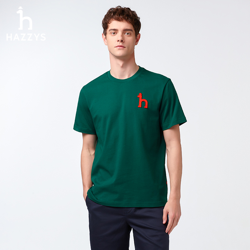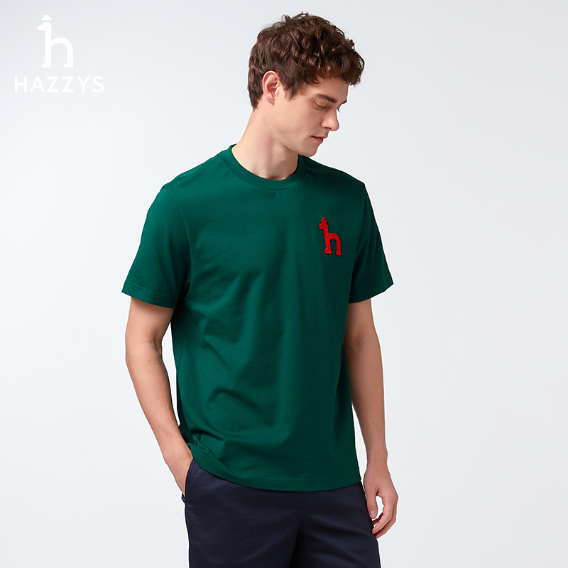 T恤男简约休闲内搭短T 圆领短袖 Hazzys哈吉斯奥莱2025春夏新款 男士