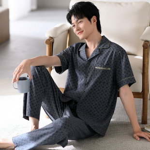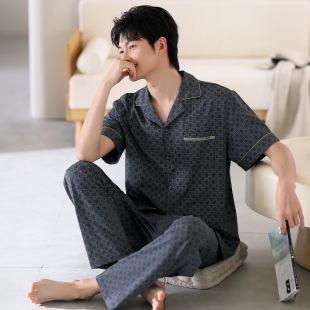 两件套装 睡衣男秋季 中年男士 青年宽松圆领家居服秋天薄款 棉质长袖