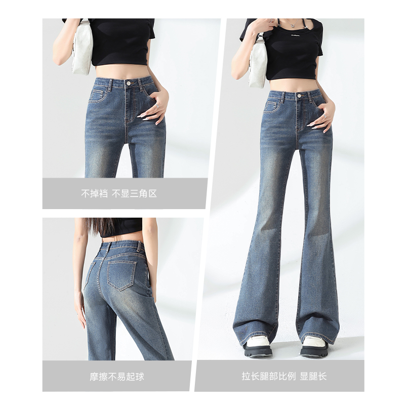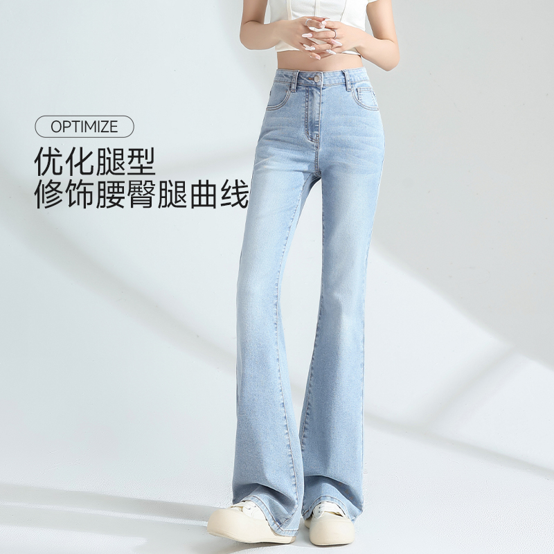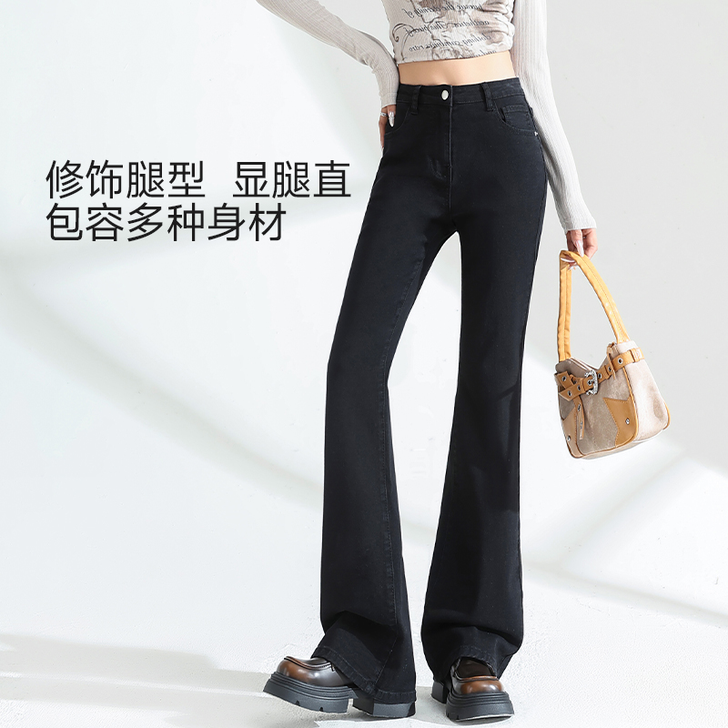 女2025新款 高腰裤 薄款 小个子修身 春秋季 KYV真维斯黑色微喇牛仔裤