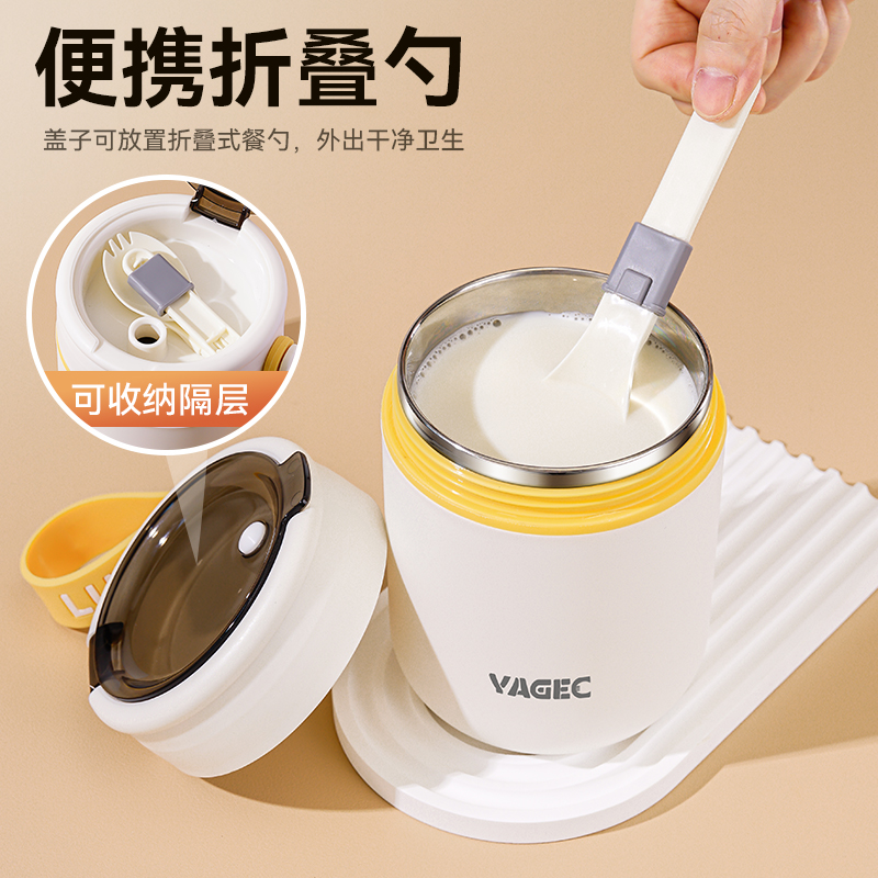 雅格厨304早餐杯带盖勺粥罐杯上班族保温杯汤碗燕麦牛奶糖水杯