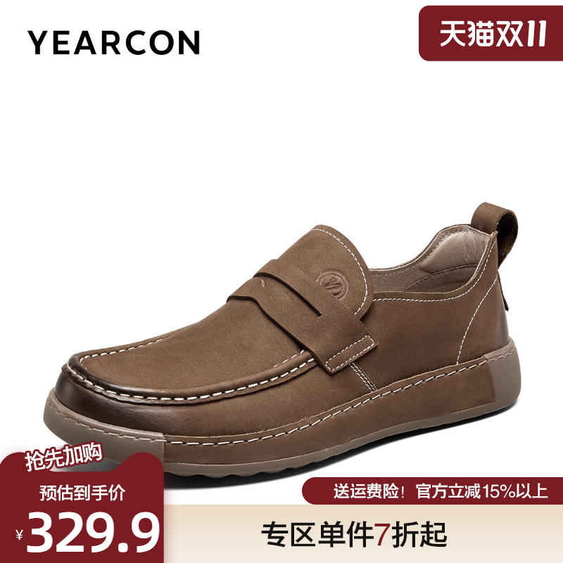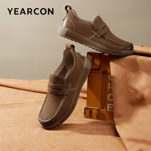 轻便复古皮鞋 意尔康休闲鞋 时尚 头层牛皮一脚蹬乐福鞋 男 男2025秋季