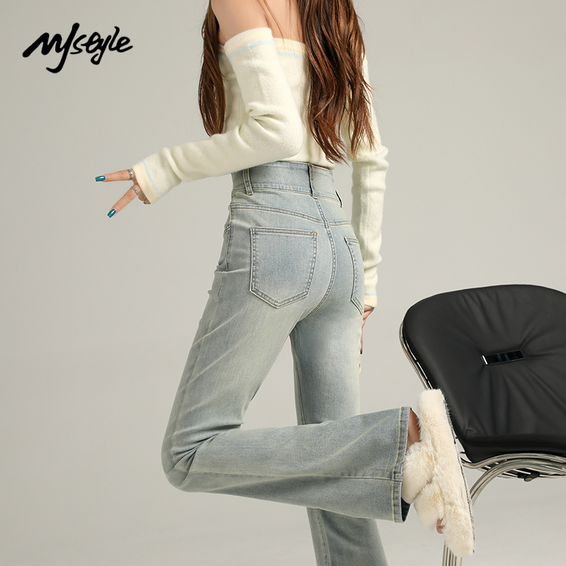 STYLE浅色微喇牛仔裤 显瘦马蹄喇叭裤 女2025年春季 高腰修身 新款