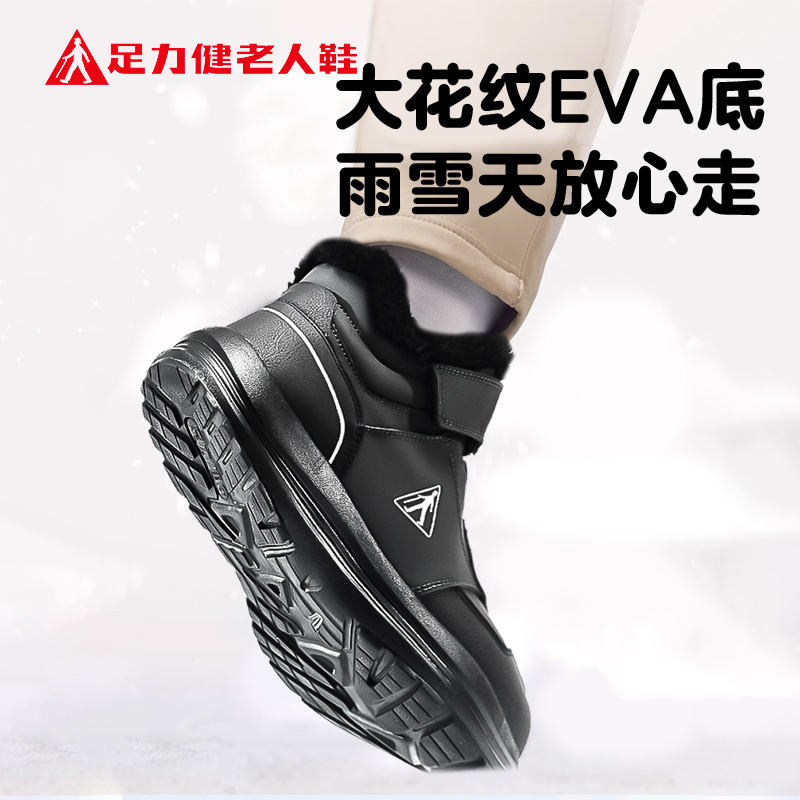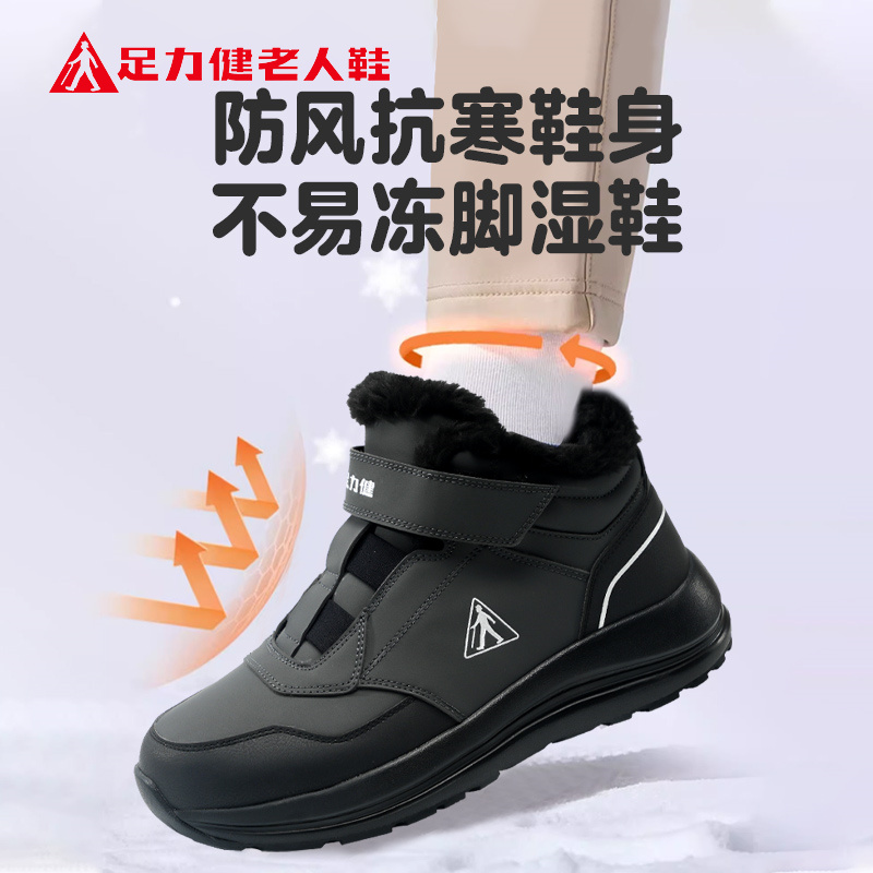 正品 妈妈鞋 2025新款 短筒雪地靴加绒保暖通勤棉鞋 冬季 足力健老人鞋