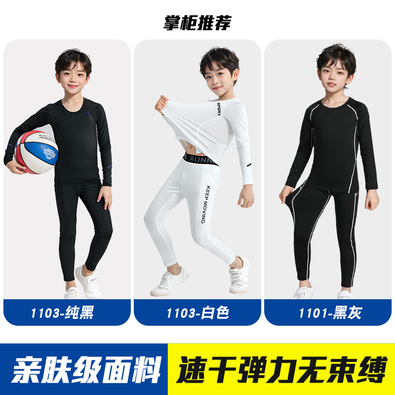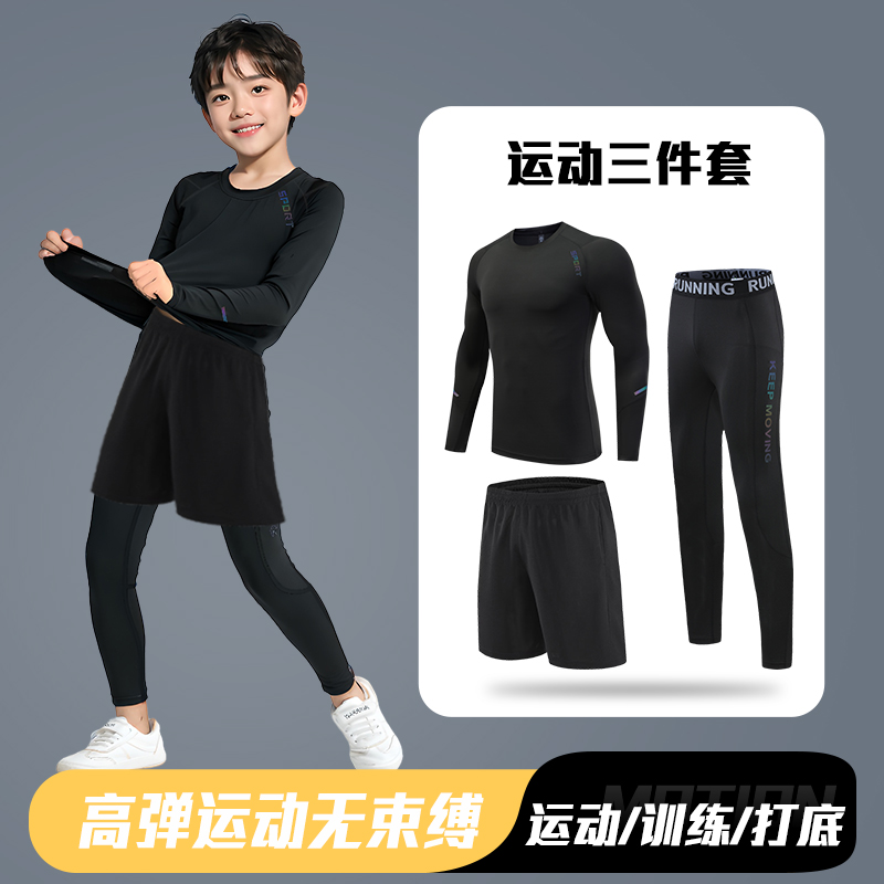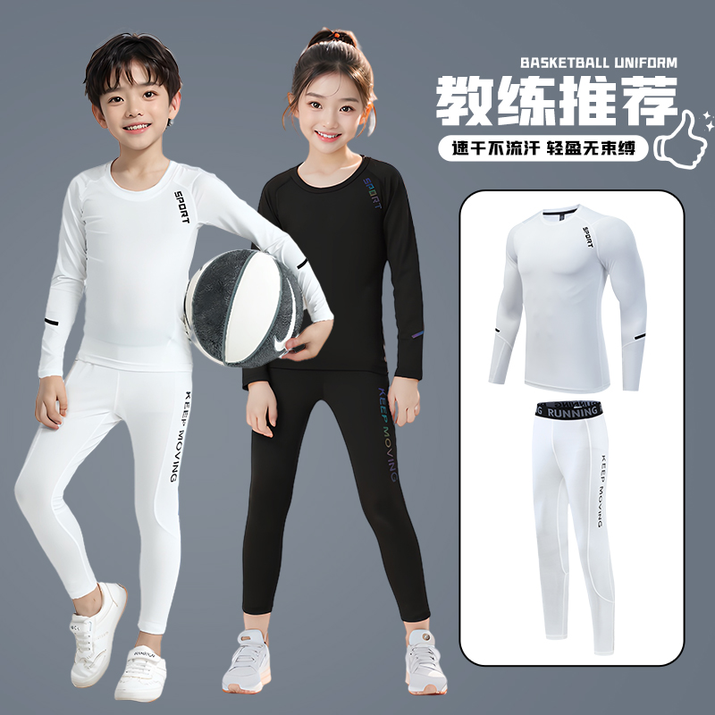 秋冬 篮球服打底速干男女童足球运动套装 儿童紧身衣训练服套装 长袖