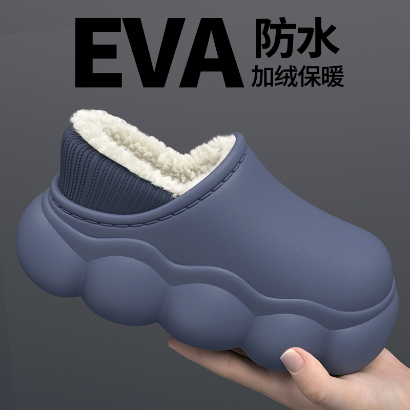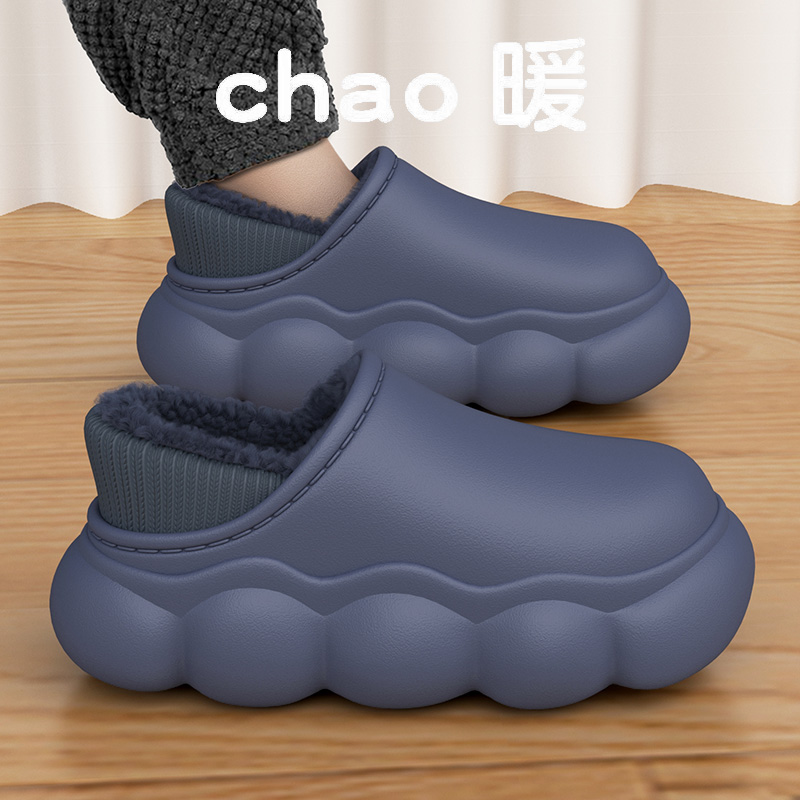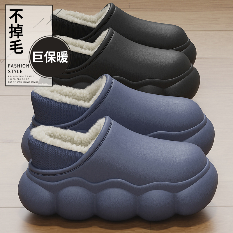 厚底加绒室内家居保暖防滑情侣棉鞋 2025新款 男冬 男冬季 包跟棉拖鞋