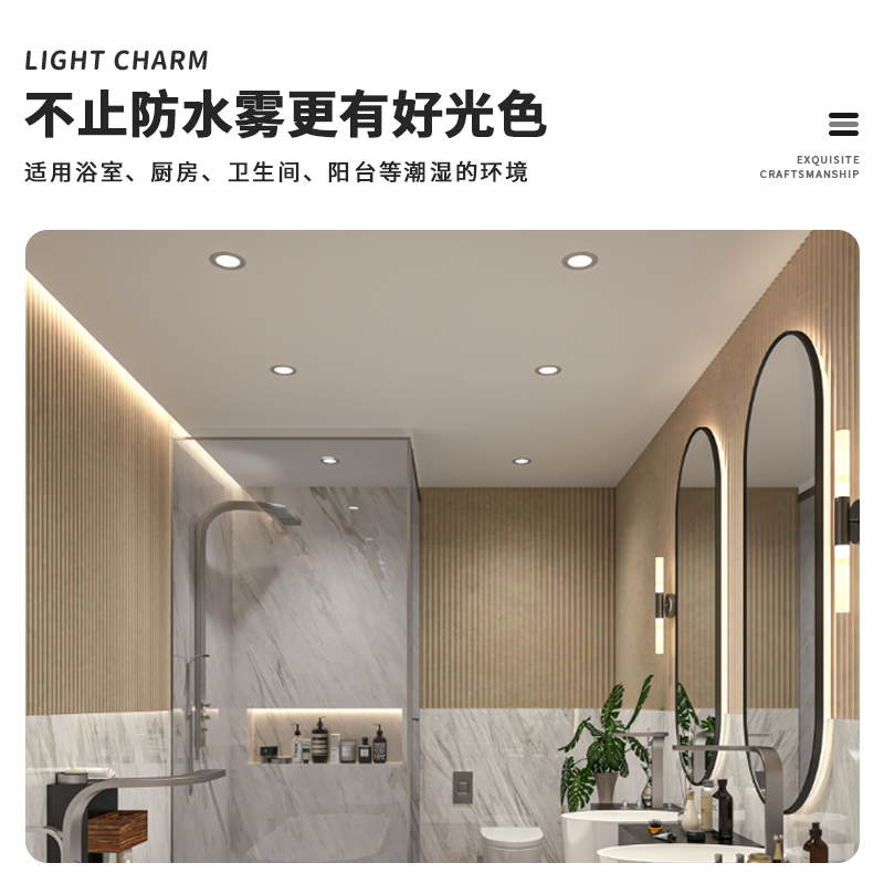 防水防雾筒灯淋浴间干湿分离IP65浴室专用湿区卫生间防水灯
