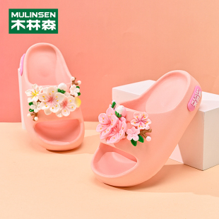 女童凉拖防滑软底室内家居宝宝公主花朵凉拖鞋 木林森儿童拖鞋 新款