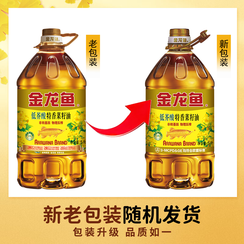 金龙鱼低芥酸特香菜籽油5L升非转基因物理压榨炒菜烹饪家用食用油
