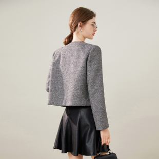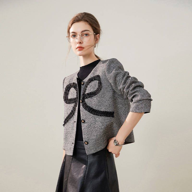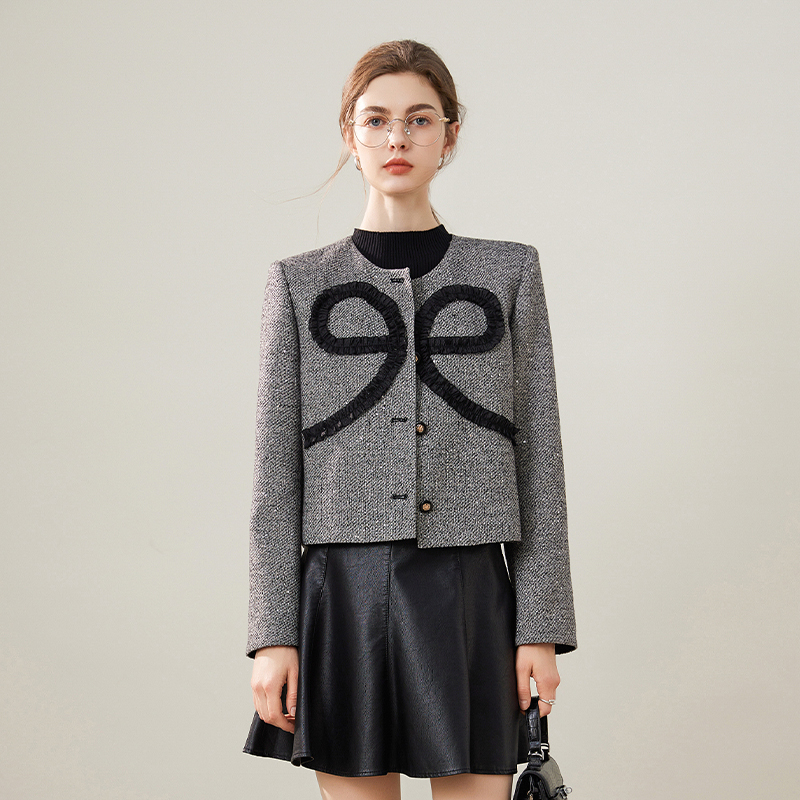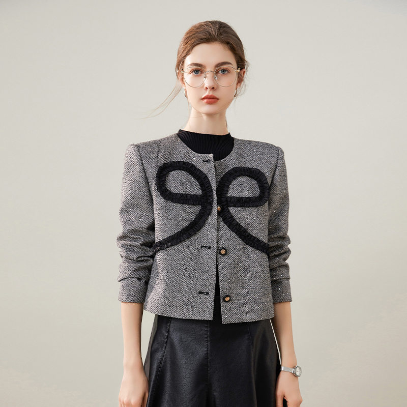 圆领单排扣外套女 气质时尚 白鹿语撞色车缝蝴蝶结外套2025春季 新款