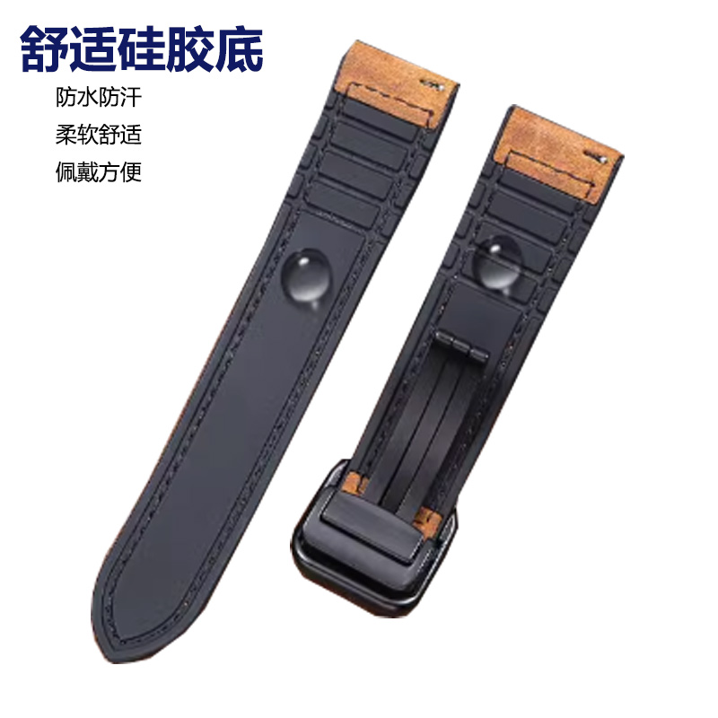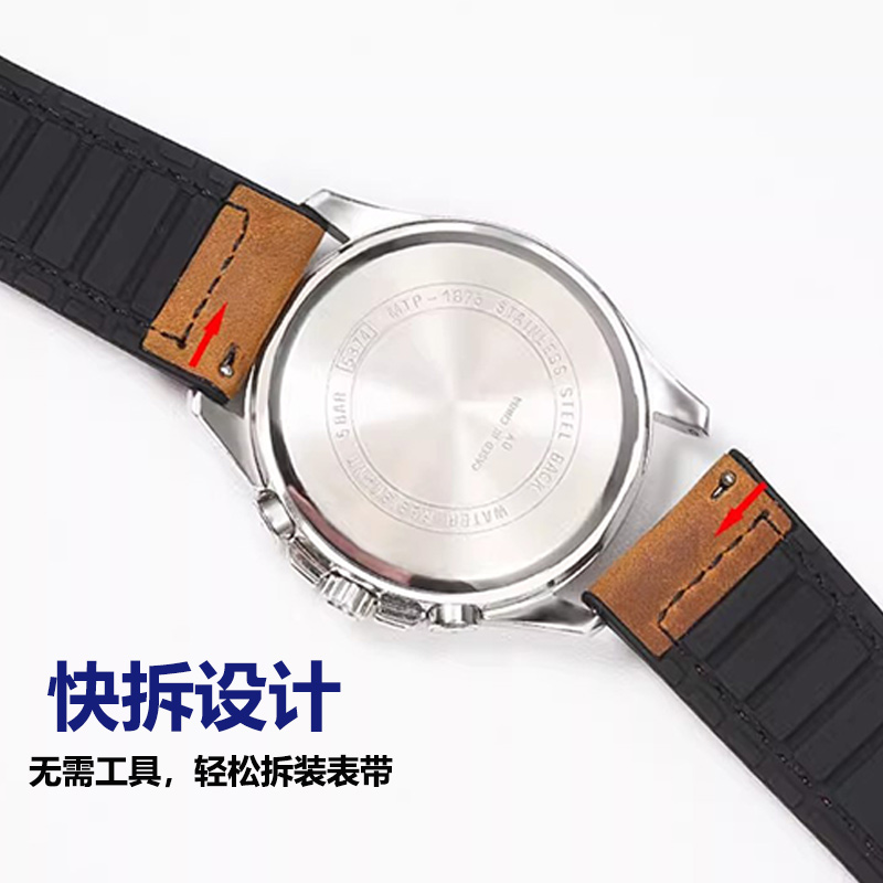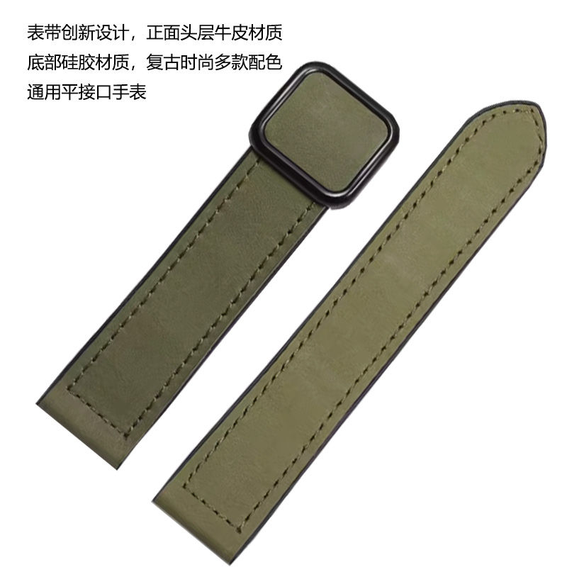真皮磁吸硅胶手表带适配西铁城卡西欧精工阿玛尼天王欧米茄表链
