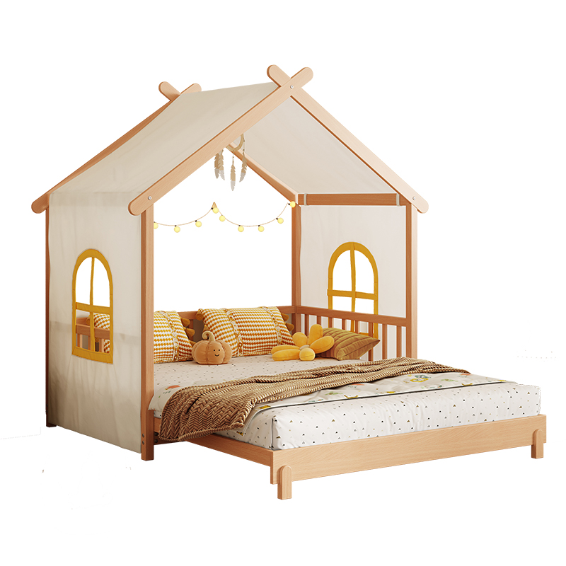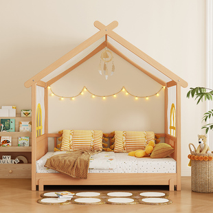 全实木可伸缩儿童床男孩女孩房子床小户型冰棍床带护栏1.5m抽拉床
