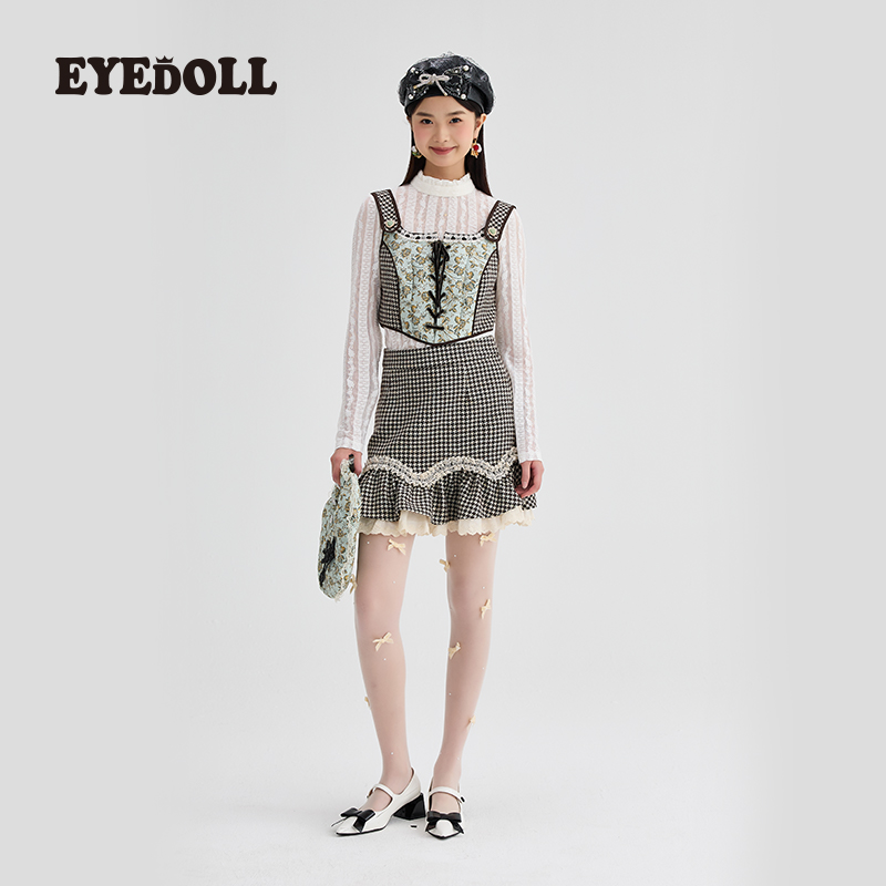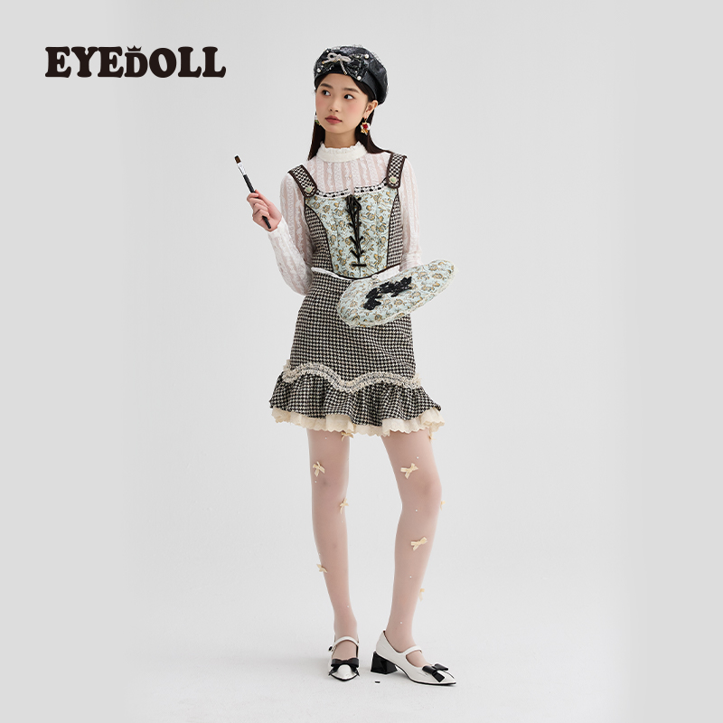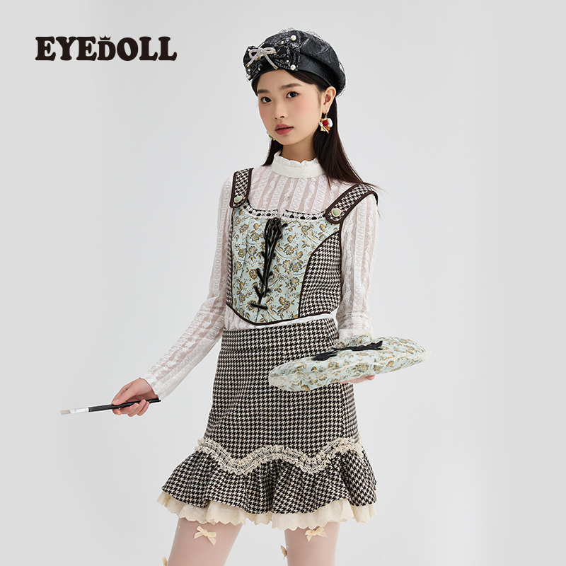 蕾丝拼接复古宽松裙子女装 巨好看 509019 冬季 三福半身裙2025新款