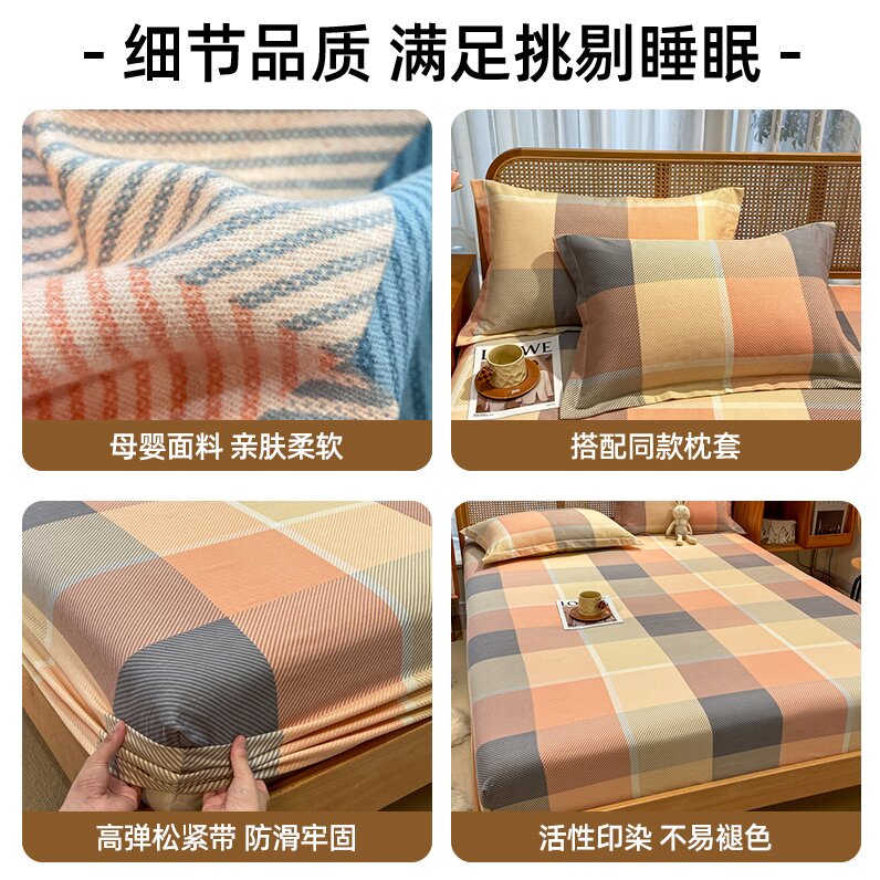 A母婴级水洗棉床笠单件纯色床罩三件套席梦思床垫保护套防滑床单