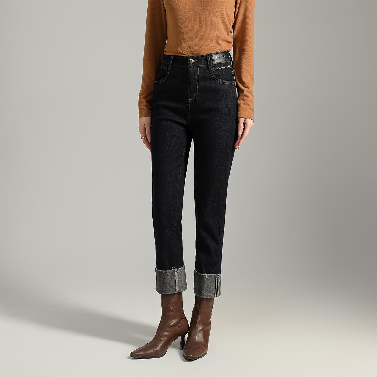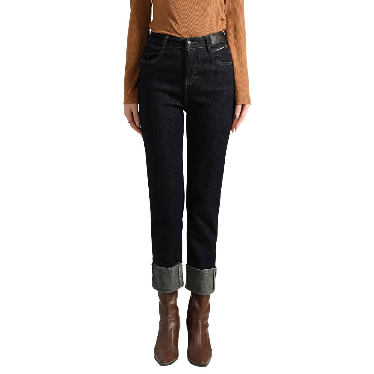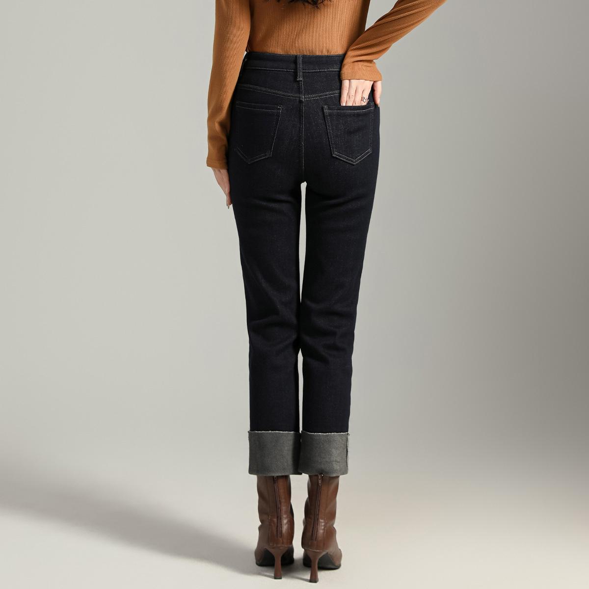 more加绒牛仔裤 复古弯刀裤 女2025新款 深蓝色阔腿裤 子X 秋冬季 one