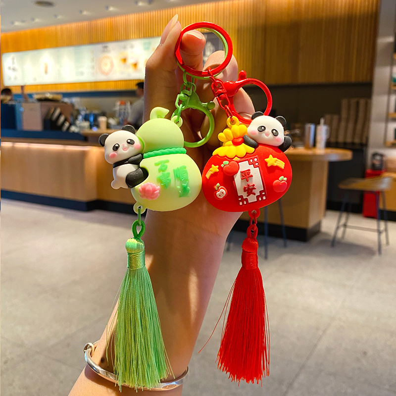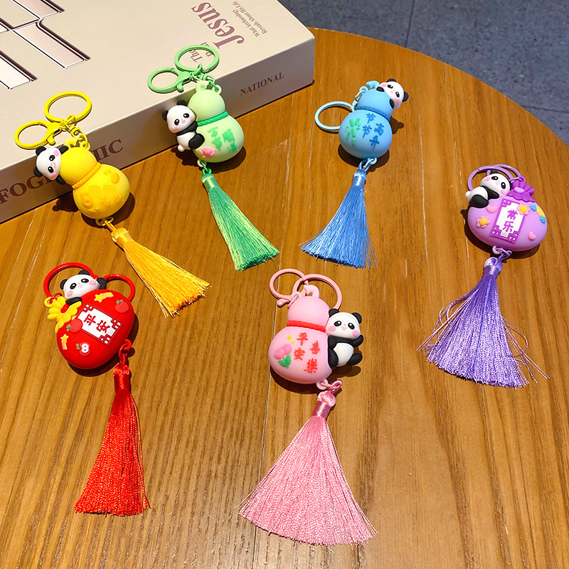 2025年新款 创意流苏葫芦熊猫汽车钥匙扣女生书包挂件钥匙链小饰品