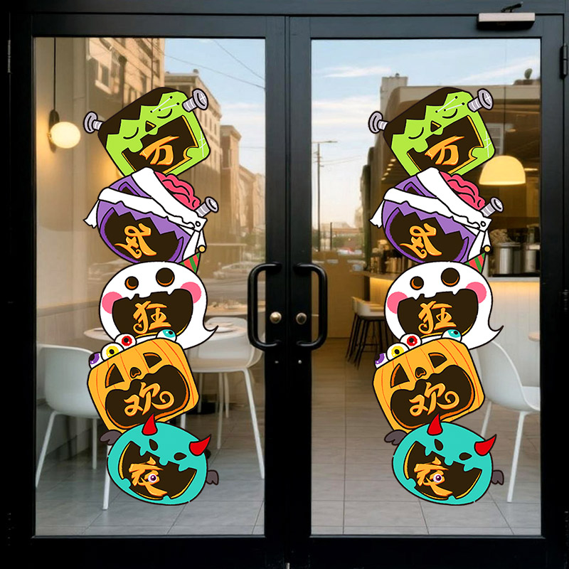 万圣节ktv装 活动氛围布置广告画 饰玻璃门静电贴纸商场店餐厅促销
