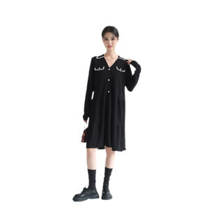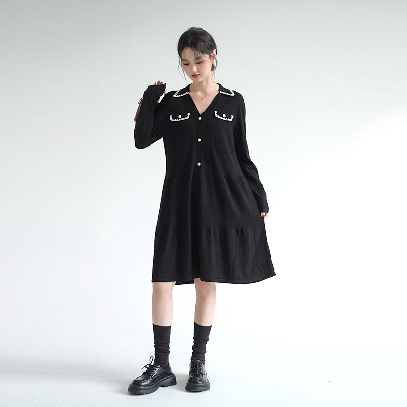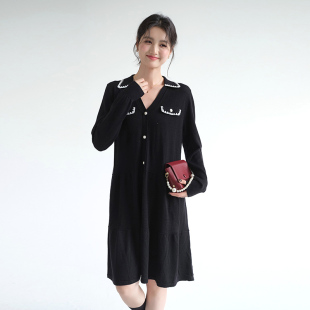 新款 小香风v领针织裙胖mm2025秋季 气质打底连衣裙 女装 蓝若水大码