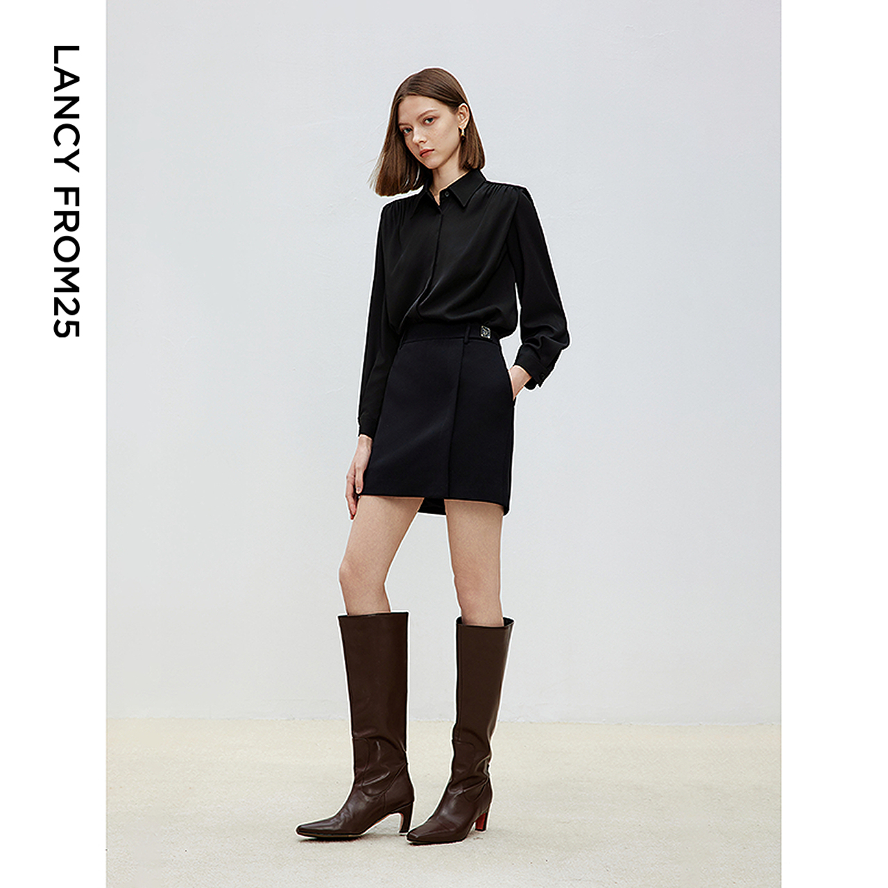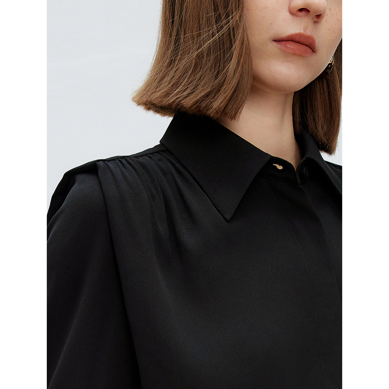 女2025年秋季 优雅缎面设计感通勤职业衬衫 朗姿法式 捏褶 免定金