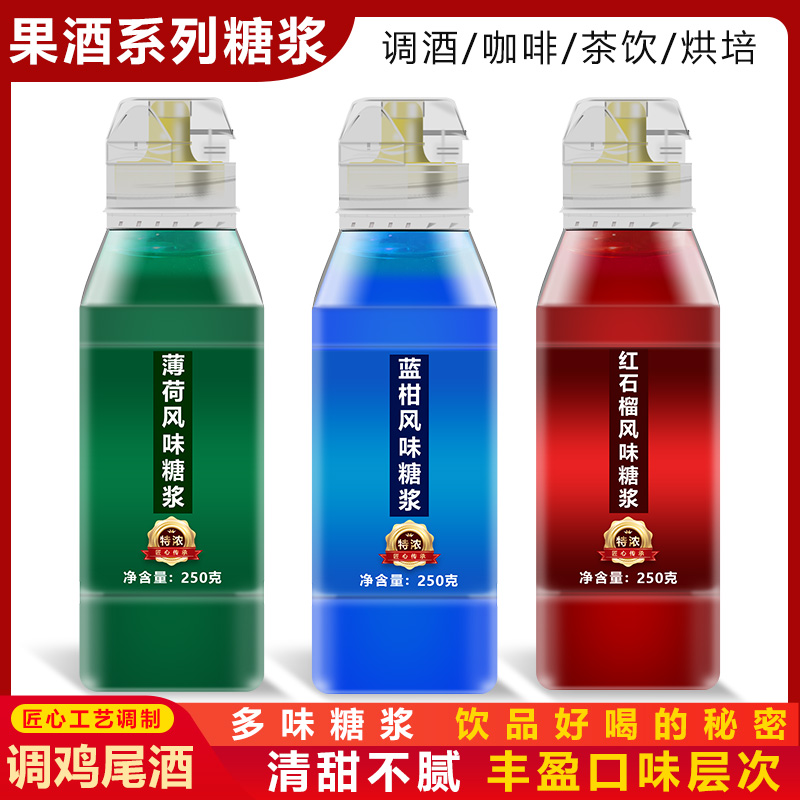 调制果酒鸡尾酒专用风味糖浆薄荷蓝柑红石榴奶茶咖啡调酒百搭糖浆