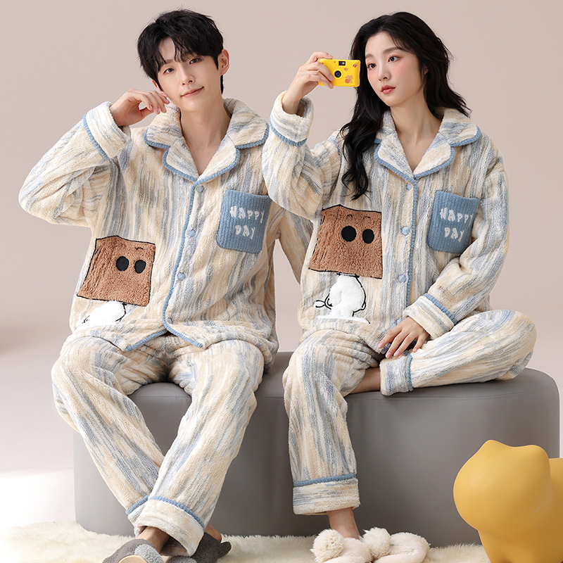 可人儿冬季 情侣睡衣可外穿雪花绒珊瑚绒加厚法兰绒情侣家居服套装