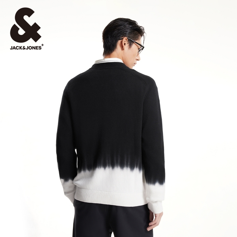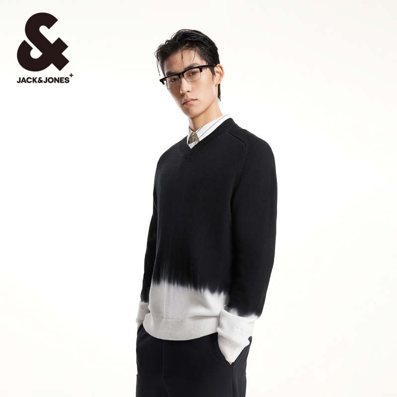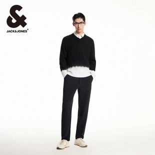 上衣渐变V领毛衣男装 杰克琼斯冬季 潮百搭休闲直筒针织衫 时尚 新款